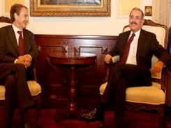 Rodríguez Zapatero, miembro del Presidium de la Internacional Socialista (IS), habló a su salida de una visita de cortesía que hizo al presidente Danilo Medina, en su despacho del Palacio Nacional, en la que fue introducido por el presidente del PRD, Miguel Vargas. Con ellos estuvo el embajador español en el país, Jaime Lacadena.