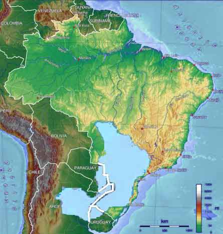 Con 1.190 000 kilómetros cuadrados de extensión, superficie mayor que las de España, Francia y Portugal juntas comprende 850 000 kilómetros cuadrados del Brasil (equivalente al 9,9 % de su territorio), 225 000 de la Argentina (7,8 %), 70.000 kilómetros cuadrados de Paraguay (17,2 %) y 45.000 kilómetros cuadrados de Uruguay, 25,5 % de la superficie de la nación oriental.