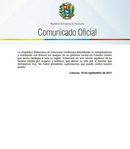 Comunicado oficial de la República Bolivariana de Venezuela