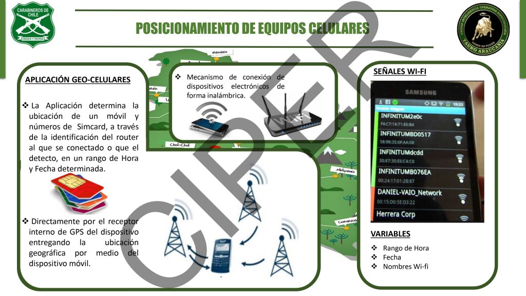 Smith explicó en detalle a los miembros de la UIOE cómo funcionaba su nueva creación para geolocalizar celulares, en una presentación en power point el 20 de diciembre de 2017. “La aplicación determina la ubicación de un móvil y números de simcard, a través de la identificación del router al que se ha conectado o que él detectó, en un rango de hora y fecha determinada” (SIC), se lee en esa presentación. También utilizaría la información de antenas celulares: “Directamente por el receptor interno del GPS del dispositivo entregando la ubicación geográfica por medio del dispositivo móvil”.