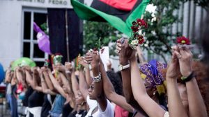 Mezclada entre los manifestantes, Benedita Da Silva, negra y gobernadora del Estado de Río entre 2002 y 2003, dijo: “Estamos aquí para decir basta: basta de discriminación, basta de violencia contra la mujer. Sabemos que Marielle fue ejecutada y exigimos que se haga justicia.”