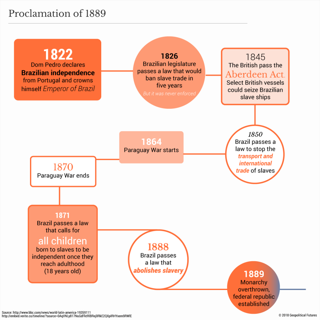 Este Deep Dive examinará tres casos importantes de intervención militar en Brasil: la Proclamación de 1889, la revolución de 1930 y el golpe de 1964. Comparar estos ejemplos con lo que está sucediendo hoy en Brasil ayudará a determinar la probabilidad de que los militares intervendrán para ayudar al país a enfrentar los desafíos sustanciales que enfrenta ahora.