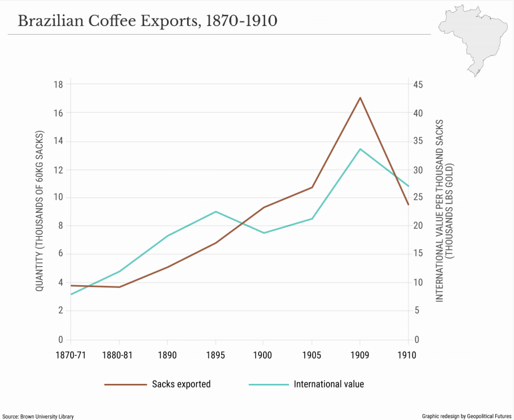 Mientras tanto, la elite gobernante enfrentaba otro desafío en el frente económico. Brasil dependía fuertemente de las exportaciones de café para obtener ingresos, pero la inestabilidad económica en Europa, particularmente relacionada con la guerra, obligó a bajar los precios de productos básicos como el café. También restringió el acceso de Brasil a mercados como Alemania, que figuraba entre los principales compradores de café de Brasil en ese momento. En la década de 1920, el gobierno brasileño buscó crédito externo para ayudar a estabilizar los precios internos del café, lo que también ayudaría a estabilizar a la élite política. Sin embargo, acceder al crédito resultó ser cada vez más difícil. Las fuentes de crédito tradicionales de Brasil en Europa no estaban en posición de continuar en esa función. En ese momento, Estados Unidos se había convertido en el socio comercial y comercial más grande de Brasil, pero Washington estaba empezando a enfrentar algunos problemas económicos propios, y la demanda de todos los bienes, tanto extranjeros como nacionales, se desplomó con el inicio de la Gran Depresión. El destino de la industria del café, y por lo tanto de la elite gobernante de Brasil, quedó sellado con el colapso del mercado bursátil de 1929.