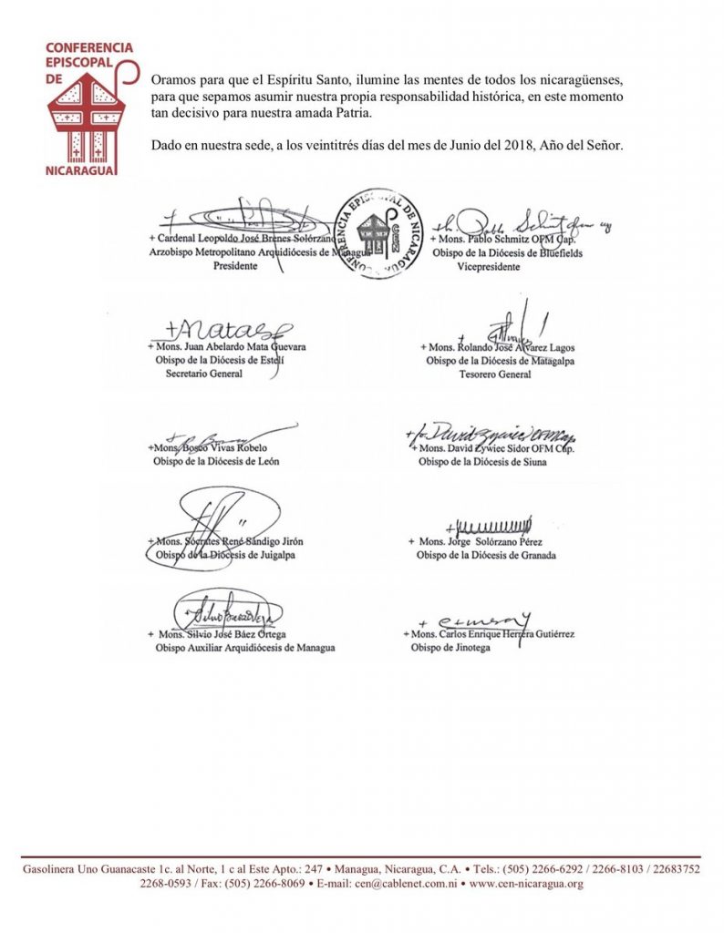 Comunicado de la Conferencia Episcopal de Nicaragua