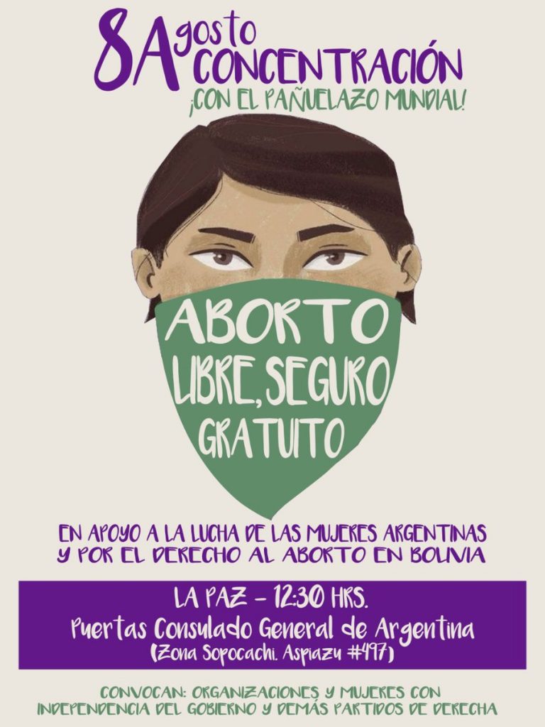 “Distintas organizaciones y mujeres independientes, nos sumamos también desde Bolivia al pañuelazo mundial por el derecho al aborto libre, seguro y gratuito, en apoyo a las compañeras argentinas y en repudio a los ataques contra mujeres que se organizaron en Chile” destaca la convocatoria de Acción 8 de Marzo, una amplia articulación de mujeres en el país.