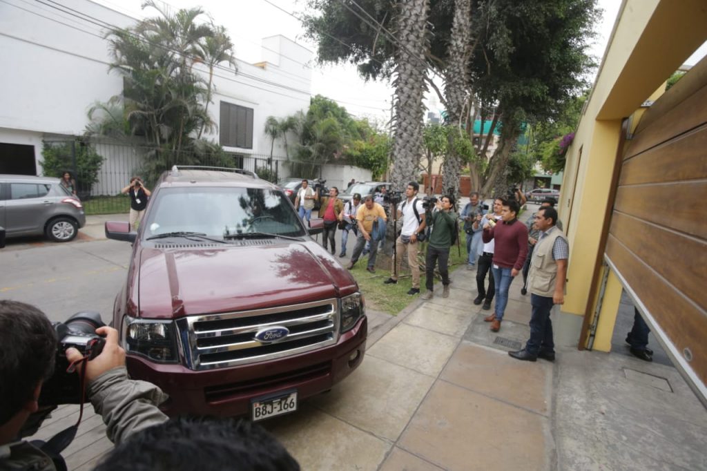 Poco antes de las 11 de la mañana, el exmandatario llegó a su domicilio ubicado en Miraflores tras retirarse de la embajada de Uruguay. Llegó a bordo de una camioneta con lunas polarizadas, luego de haber estado en la casa de su hija Carla García en Barranco, según lo informado por su secretario personal Ricardo Pinedo. Este último precisó además que el líder del partido del APRA no solicitará asilo en otra embajada.