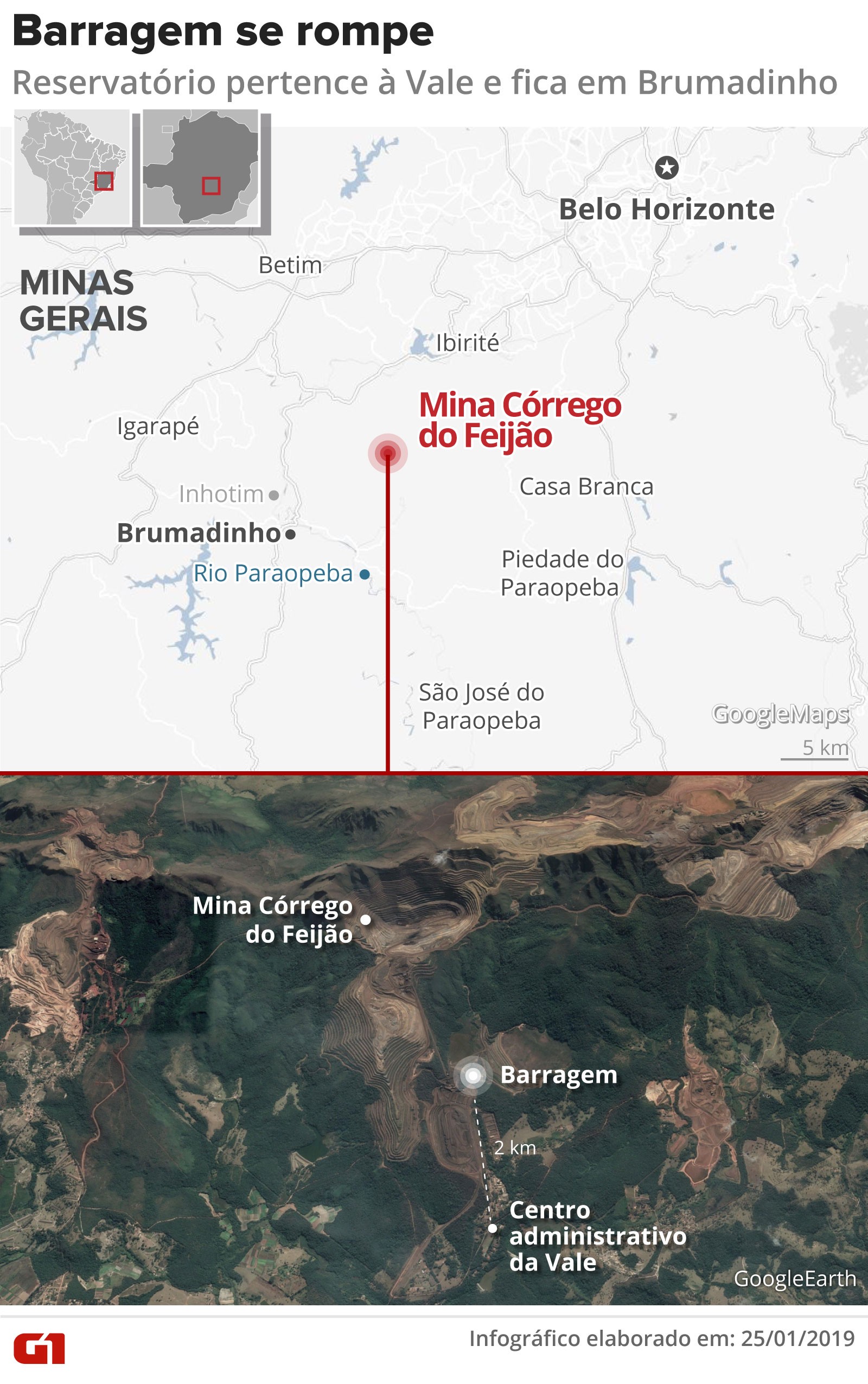 La represa Mina do Feijão, que pertenece a la compañía brasileña Vale, se rompió este viernes (25), en el municipio de Brumadinho, una de las ciudades de la región metropolitana de Belo Horizonte, capital del estado de Minas Gerais [sureste de Brasil].