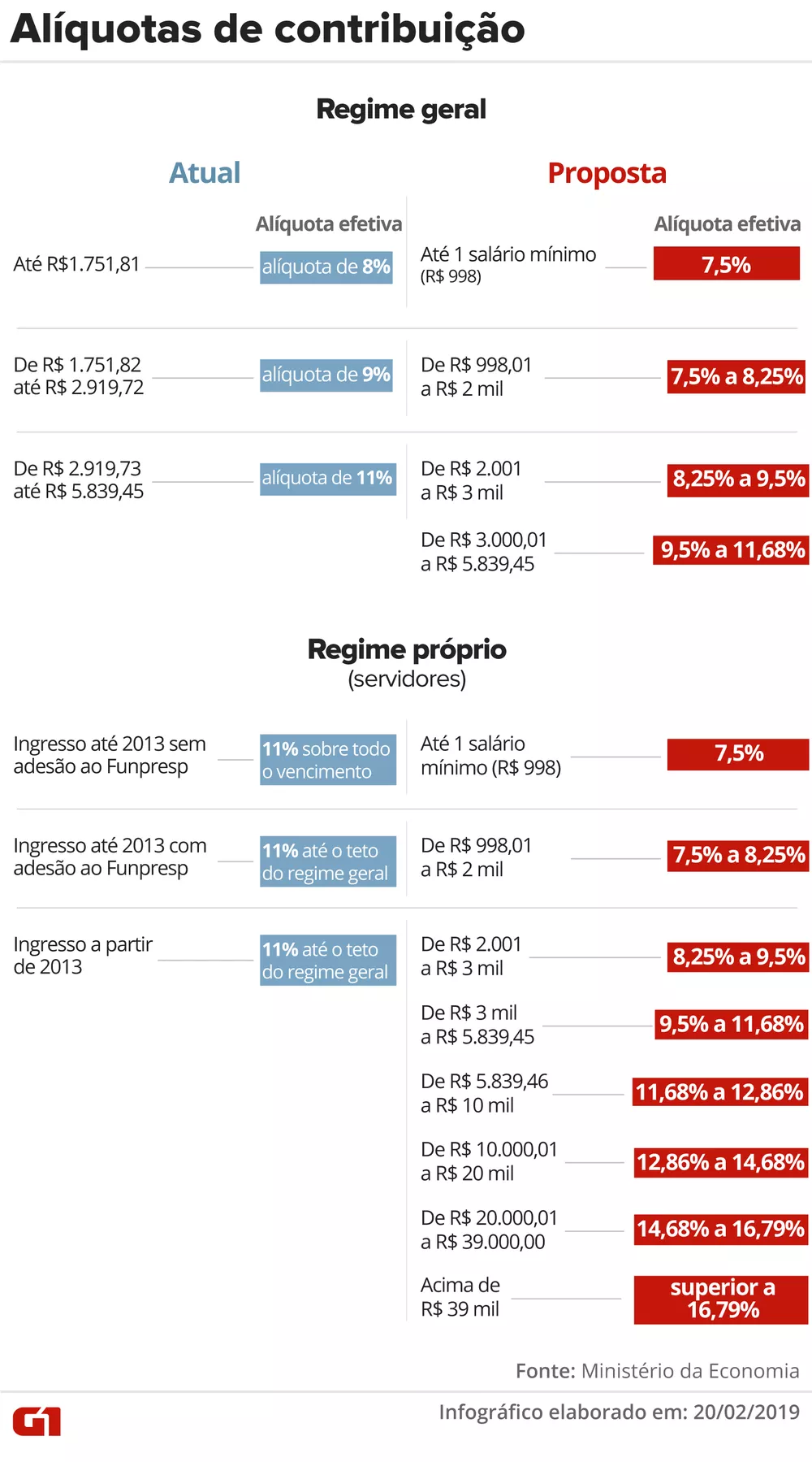 A proposta da nova Previdência prevê uma mudança na alíquota paga pelo trabalhador. Os trabalhadores que recebem um salário maior vão contribuir com mais. Já os recebem menos vão ter uma contribuição menor, de acordo com a proposta.