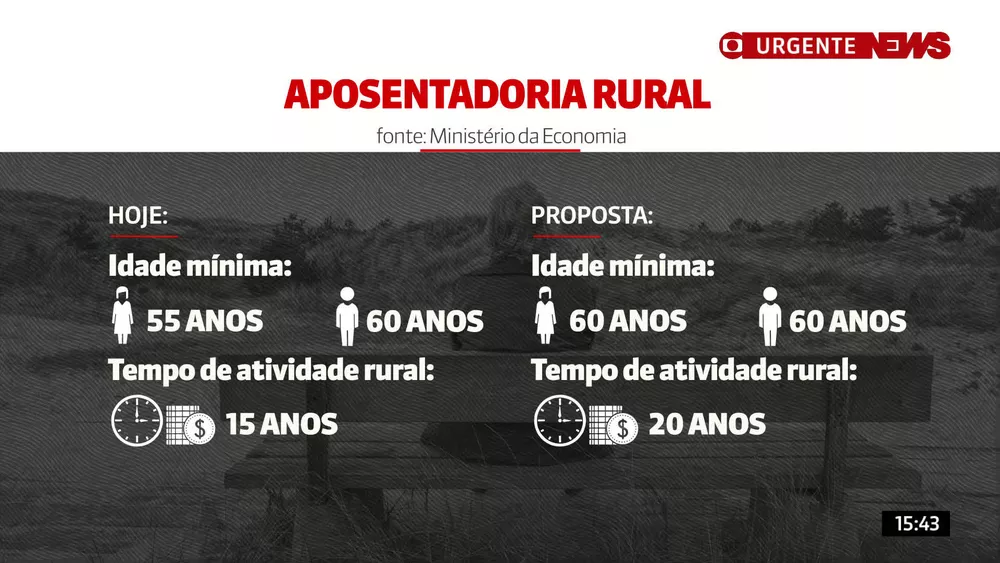 Para os trabalhadores rurais, a idade mínima de aposentadoria proposta é de 60 anos, para homens e mulheres. A contribuição mínima será de 20 anos.