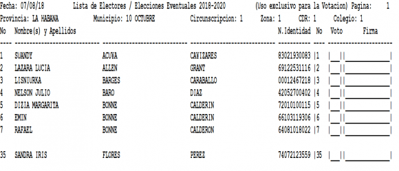 Las listas electorales para esta ocasión tienen un nuevo formato que cuenta con sólo 35 líneas por hoja y tienen de forma ordenada la información de los votantes, como el nombre y apellidos, provincia, circunspcripción, la zona de los CDR y el número de los mismos. Fue aumentado el tamaño de la letra en las listas y mayor espacio entre líneas lo cual facilita el trabajo con las mismas.