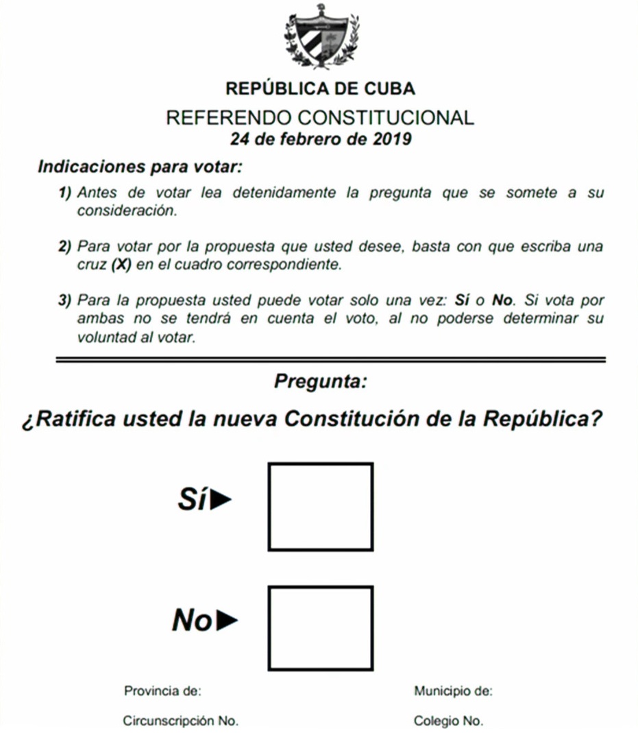 El referendo consulta si los electores cubanos están a favor de la nueva Constitución de Cuba, cuyo proyecto fue sometido a un amplio proceso democrático de consulta popular durante tres meses (del 13 de agosto hasta el 15 de noviembre).