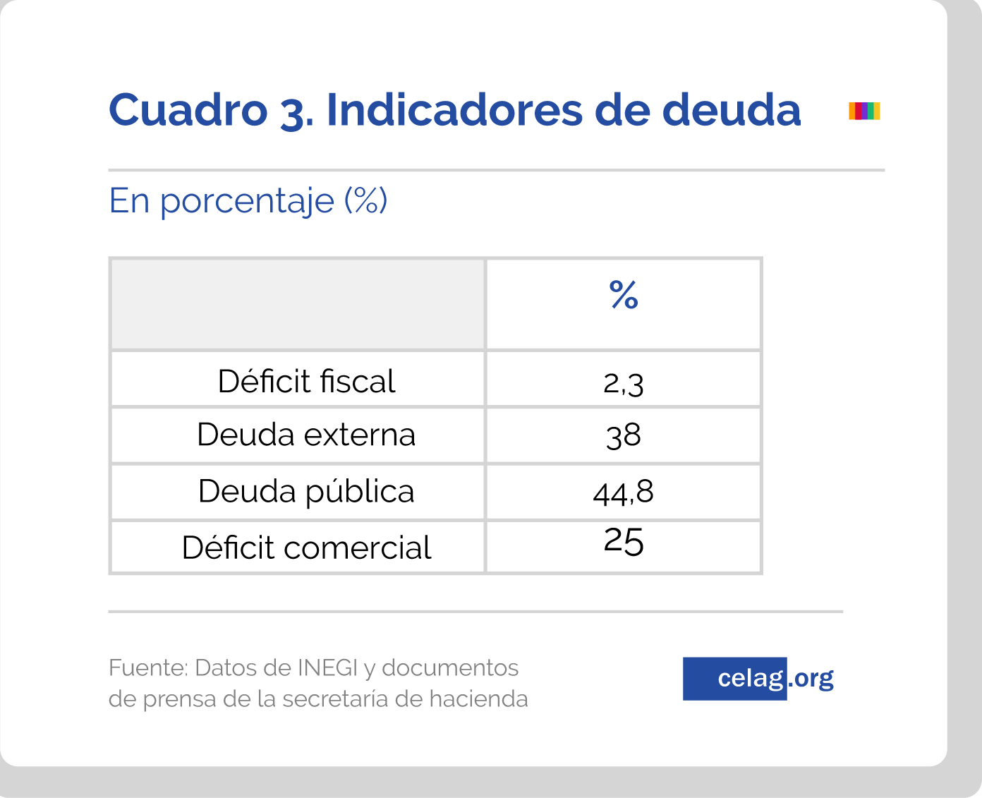 Pero, aún con un presupuesto que garantiza la estabilidad, las calificadoras de riesgo, Standard & Poor´s y Fitch, decidieron bajar la calificación tanto del país como de PEMEX, la CFE, bancos y empresas, respecto de su perspectiva de crecimiento. Debe diferenciarse, en este sentido, la calificación de PEMEX, la CFE y la calificación soberana, ya que el deterioro de las cuentas no es resultado de la gestión actual sino de la anterior. La reducción de la calificación actual se basa en una desaceleración global, el mismo tiempo que en una expresa diferencia política de las calificadoras con la decisión del Gobierno sobre la recuperación de estas empresas estratégicas para el país.