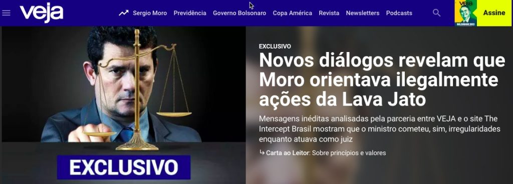 Em resumo, a Veja – assim como o Intercept e a Folha – dedicou recursos editoriais expressivos à exposição das impropriedades de Moro em defesa de um princípio simples, mas fundamental: “Afinal, ninguém tem salvo conduto ou está acima da lei”.