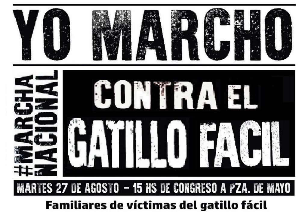 Este marte 27 de agosto se llevará adelante la quinta jornada nacional contra el gatillo fácil y la represión estatal, convocada por sobrevivientes y familiares de víctimas nucleados en la Marcha Nacional contra el Gatillo Fácil.