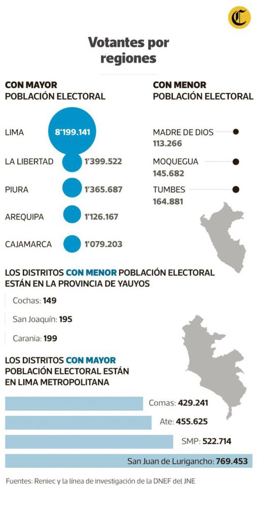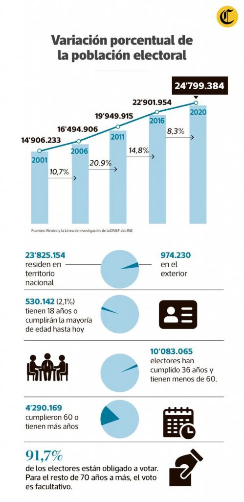Vale precisar que la cantidad exacta de peruanos habilitados para votar en las Elecciones Congresales Extraordinarias 2020 es 24′799.384, según el Padrón Electoral elaborado por el Reniec y aprobado por el Jurado Nacional de Elecciones (JNE).