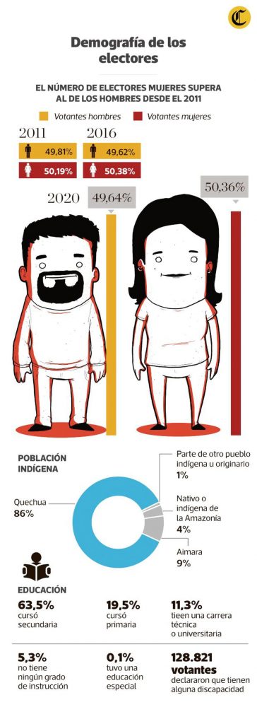 Otro rasgo importante de la población que votará hoy es que el 50,4% son mujeres; una tendencia que se ha mantenido desde el anterior proceso electoral, cuando el número de población femenina superó en más de 170 mil electores al de los hombres.