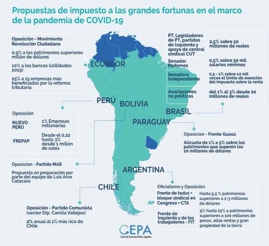 Mapa. Propuestas de impuesto a las grandes fortunas en América del Sur en el marco de la pandemia de COVID-19.