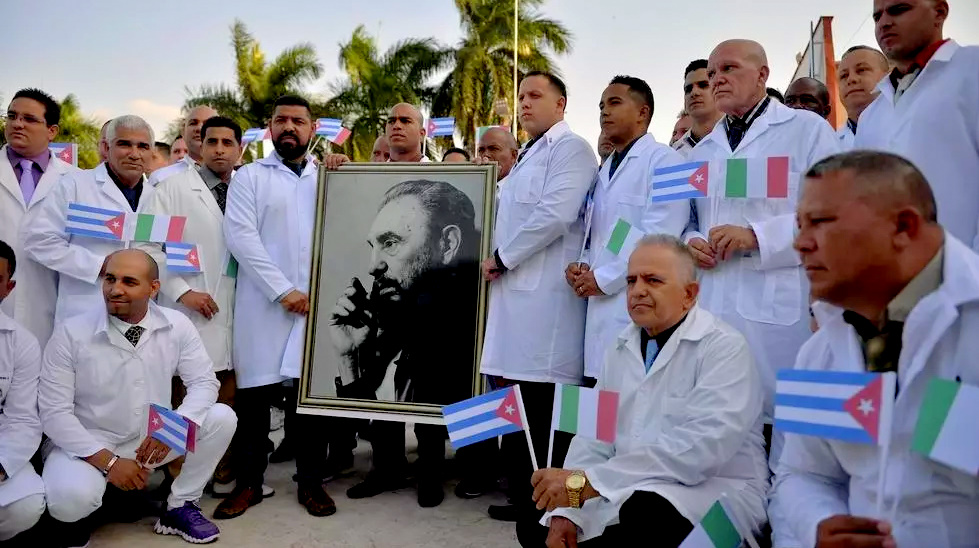Después de la Revolución Cubana de 1959, el gobierno revolucionario desarrolló un sistema de salud gratuito y universal, que logró más médicos por persona que cualquier otro país del mundo. Esto ha sido facilitado por el acceso gratuito y universal a la educación en todos los niveles. Los beneficios son distribuidos globalmente; Unos 400,000 profesionales médicos cubanos han trabajado en el extranjero en seis décadas, principalmente en países pobres, brindando atención médica gratuita a domicilio.