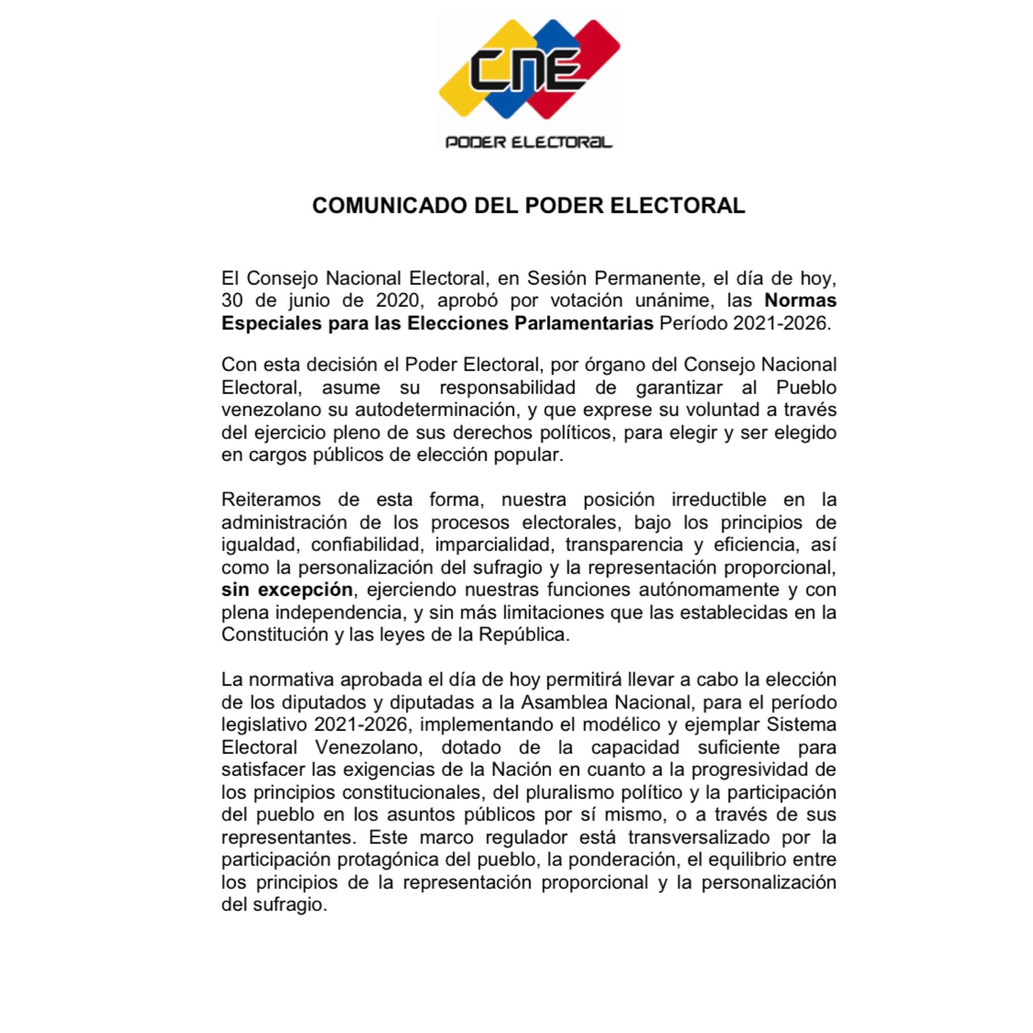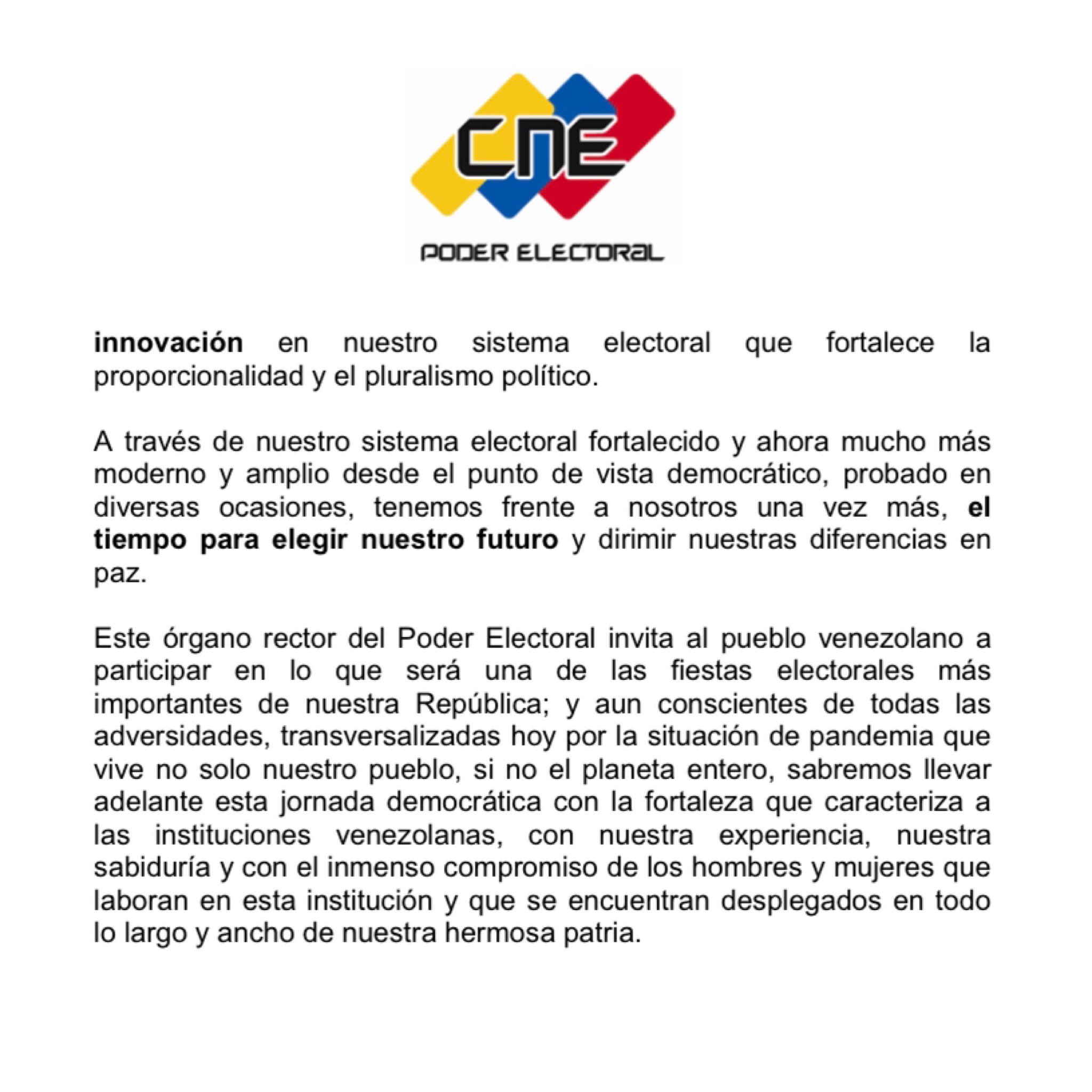 Añadió, además, que «el CNE se ha mantenido en sesión permanente desde el pasado viernes 26 de junio, a fin de organizar el proceso de las elecciones parlamentarias que se llevarán a cabo durante este año».