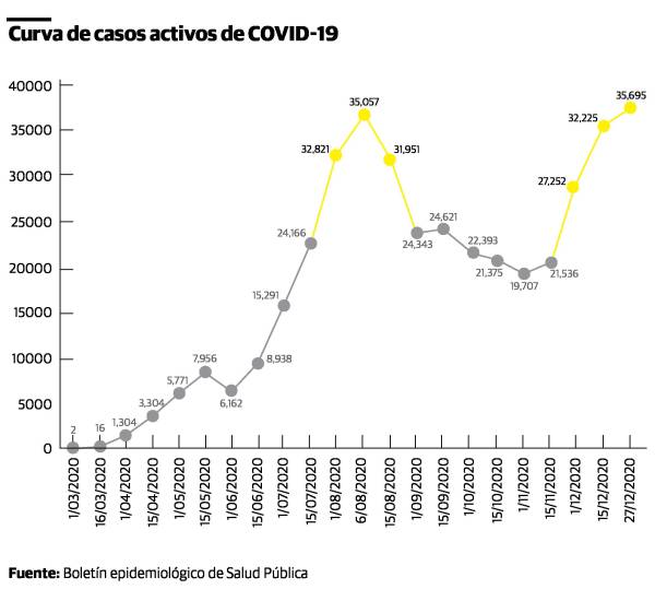 En 26 días del mes de diciembre, los casos de COVID-19 han aumentado en un 15 %, al pasar de 144,302 contagios en el boletín presentado el uno de diciembre a 166,764 en el del día de ayer. Es decir que en este período han dado positivas al coronavirus 22,462 personas.