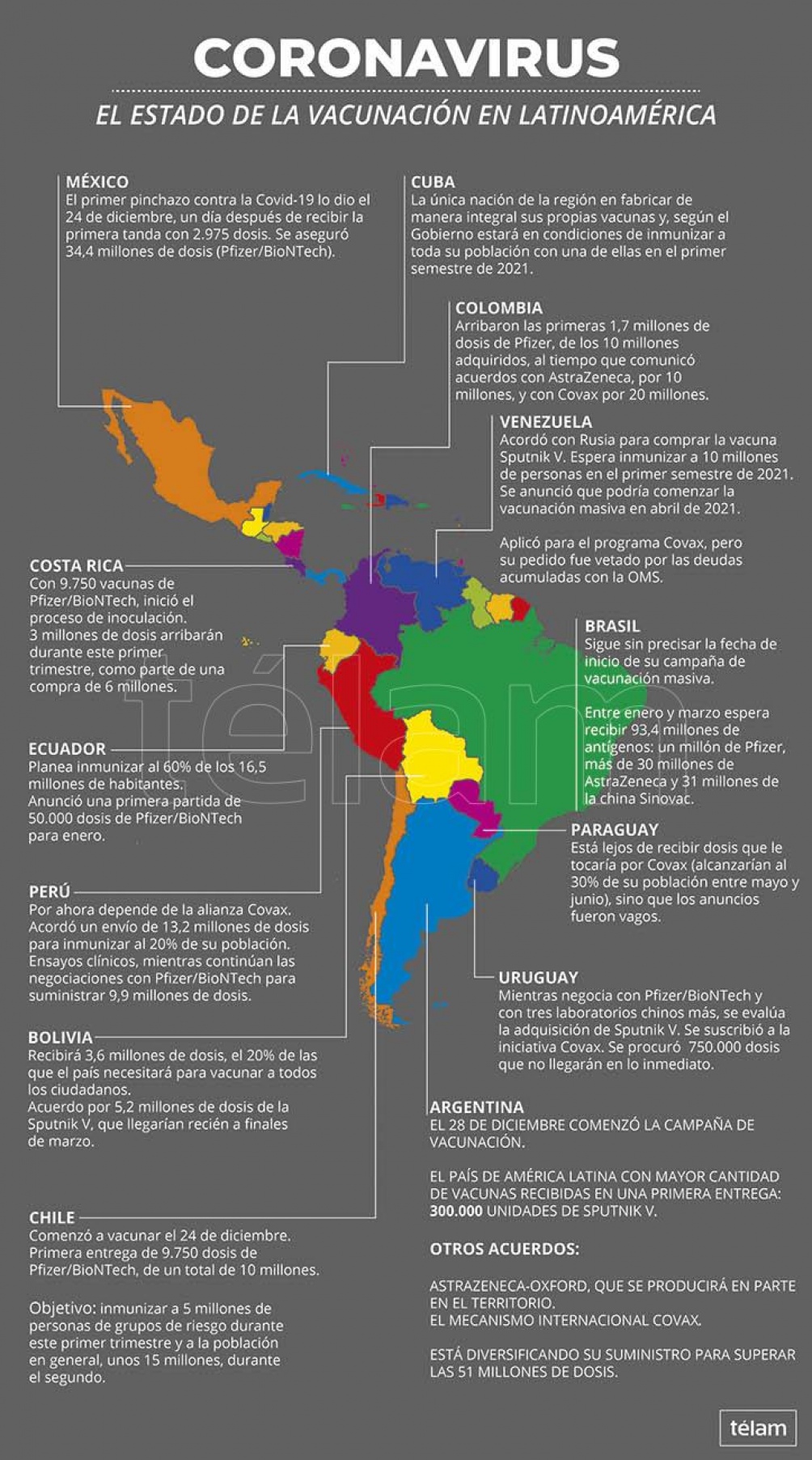 Aunque aún es una pequeña minoría la que dio luz a la inoculación y acumulación de stock en América Latina, el fin de año en la región estuvo marcado por el anuncio de importantes acuerdos para obtener vacunas en muchos países.