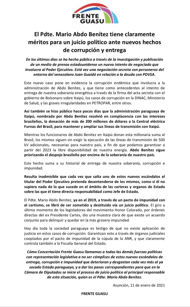 Frente Guasu http://www.nanduti.com.py/2021/01/12/frente-guasu-pide-juicio-politico-presidente-mario-abdo/