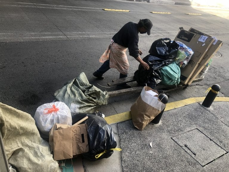 Para cubrir esta alta demanda, la capital mexicana cuenta con un servicio extraoficial, no solicitado pero muy bien aprovechado por las alcaldías y el gobierno central: un ejército de más de 10 mil voluntarios que barren las calles, recogen basura casa por casa y apoyan la recolección en los camiones. Lo que ganan con la venta de los residuos a centros de acopio, sumado a las simbólicas propinas que les da la ciudadanía por esta labor, es el único ingreso de estos recolectores: unos 200 pesos (10 dólares) al día.