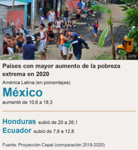 Los países de Latinoamérica donde más subió la extrema pobreza en 2020 son: México, Honduras y Ecuador, según las proyecciones hechas por la Cepal.