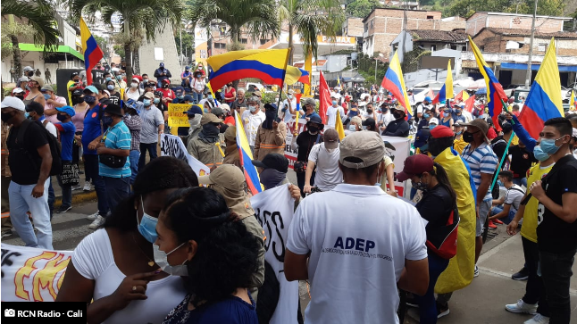 En Cali avanza una movilización pacífica desde la Portada al Mar, oeste de la ciudad, que tendrá como punto de llegada el Hospital Universitario del Valle. En la marcha participan más de 200 personas integrantes de organizaciones sociales, sindicales y maestros.
