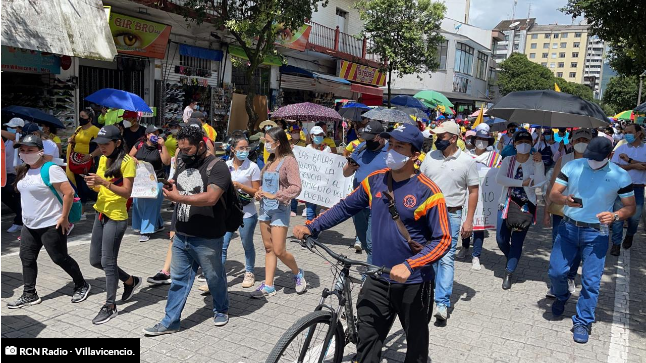 En Villavicencio capital del Meta, sindicatos, organizaciones sociales, colectivos populares, estudiantes, campesinos y ciudadanos en general marchan desde el centro de la ciudad hacia Llano Lindo, kilómetro 85, donde está el bloqueo a la vía al Llano.