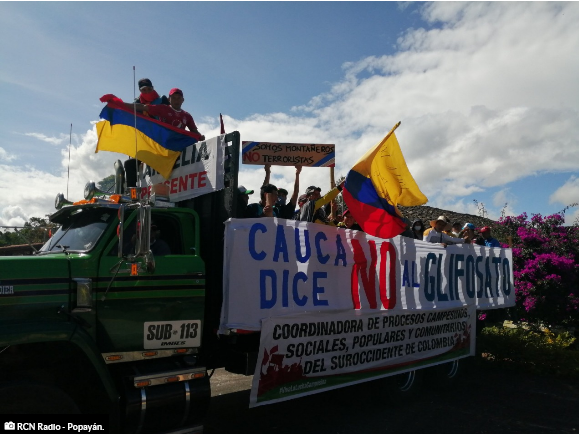 En su mayoría los manifestantes son campesinos provenientes del sur del Cauca, quienes piden sea derogado el decreto por medio del cual se reactivó la fumigación.
