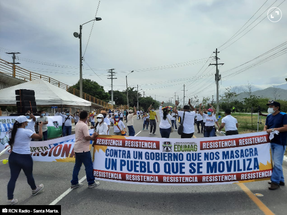 En Santa Marta, gremios, líderes estudiantes y sindicatos se unieron en un plantón cultural sobre la Troncal del Caribe.