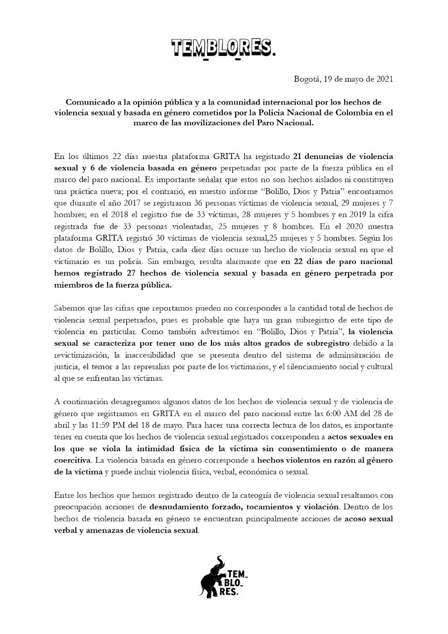 Comunicado de la ONG Temblores