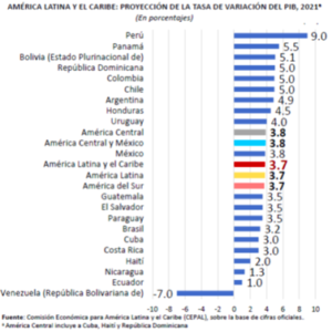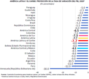 ritmo de crecimiento que registrará una economía en América Latina para el próximo año; aunque también Perú con una caída de 12.9% en el 2020, es uno de los países más afectados por el Covid-19.