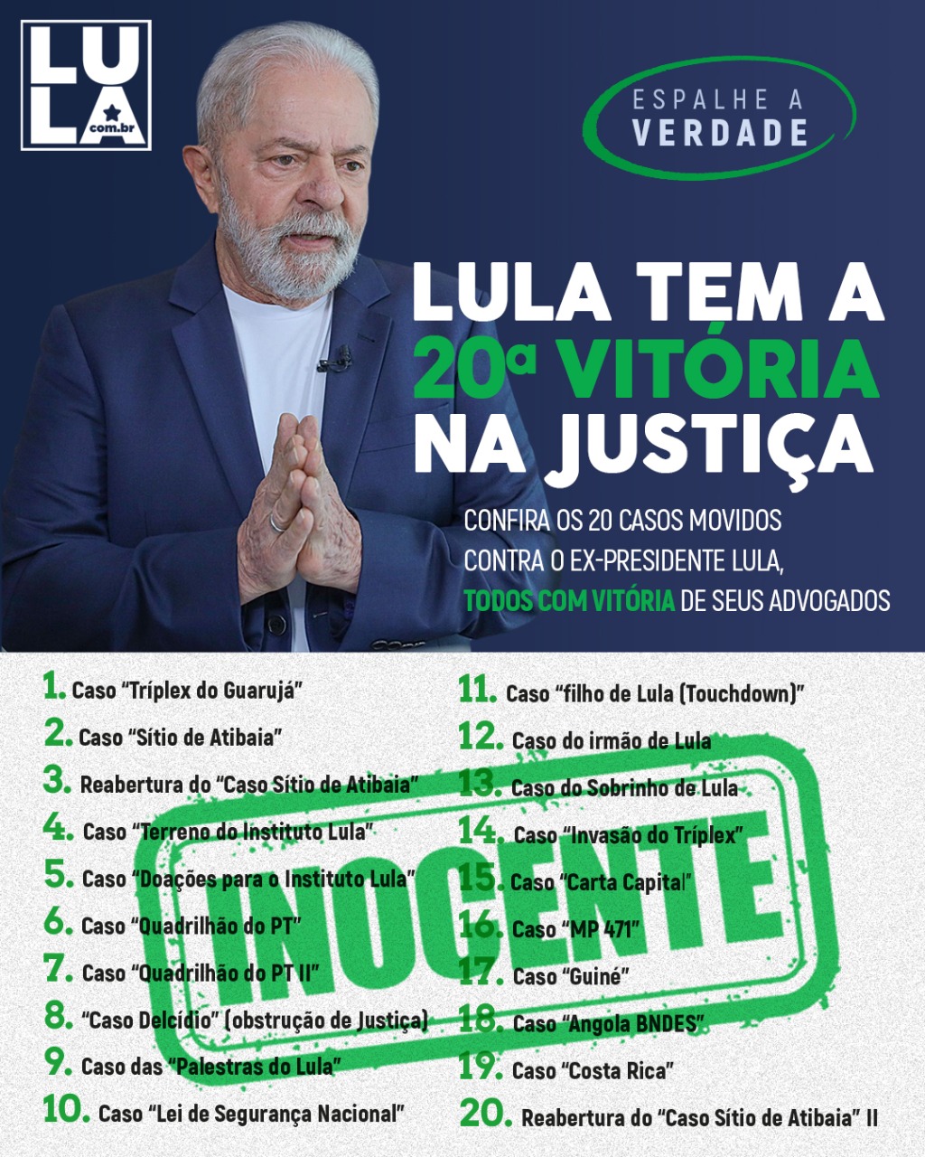 Vigésima vitória de Lula na Justiça! Entenda e compartilhe a verdade