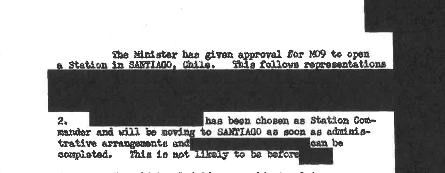 At a closed hearing of the Tribunal in June, government officials provided Fernandes with several hundred heavily redacted records–ASIS is referred to by the codename MO9 in the documents–relating to the opening, administration, and closing of the ASIS station in Santiago between 1970 and 1973. As a result of Fernandes’ declassification efforts, the Tribunal is currently deliberating whether to compel the government to re-release those heavily censored historical records on Chile – with fewer redactions.
