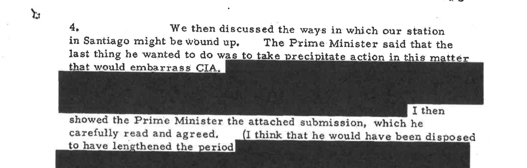 But, after more than 18 months of operations that appear to have involved handling several CIA-recruited Chilean assets in Santiago and filing intelligence reports directly to CIA headquarters in Langley, Virginia, in the spring of 1973 the new Labor Party Prime Minister, Gough Whitlam, ordered the director of ASIS to close down the Chile operations. Whitlam was “uneasy” about Australia’s involvement because if it were to “receive any publicity as a result of these matters, then he would find it extremely difficult to justify our presence there,” according to one declassified memorandum of conversation written by then ASIS Director-General William Robertson. “The Prime Minister said,” according to another declassified memcon, “he was very aware of the importance of this [operation] to the Americans and he was most concerned that they should not interpret his decision as being anti-American …. He said he was most concerned that the Americans should not believe that he personally necessarily disapproved of what they were doing in Chile nor did he support Allende [redacted].” The Prime Minister “was most concerned that CIA should not interpret this decision as being an unfriendly gesture towards the U.S. in general or towards CIA in particular,” according to another report on their conversation.