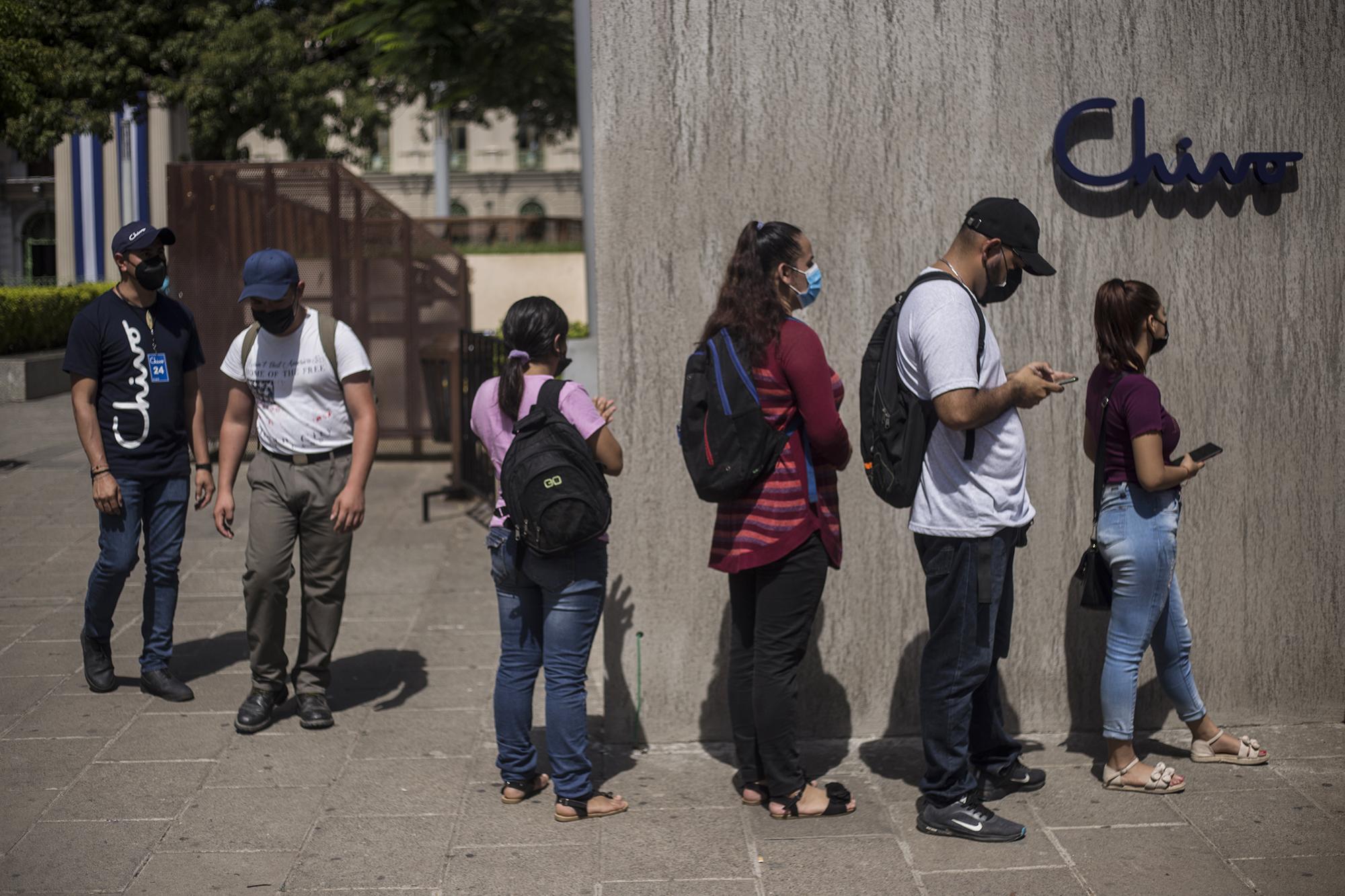El empleado de Chivo se llama Edwin, tiene 19 años, y es un joven que habla con amabilidad desmesurada. A quienes llegan y no intentan sacar el bono del Gobierno en efectivo, él les explica con paciencia cada paso que hay que hacer para invertir en bitcoin o para recibir remesas. Edwin cuenta que estudió hasta bachillerato y que ha sido comerciante, ha trabajado en atención a cliente, en venta de servicios funerarios y, durante el inicio de la pandemia, como enterrador de cuerpos bajo protocolo de Covid-19.