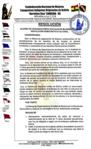 La Alianza de Organizaciones Sociales de Mujeres por la Revolución Democrática y Cultural resolvió instar a los jerarcas de la Iglesia Católica reconsiderar la obligación de la continuidad del embarazo a la niña de 11 años que quedó embarazada producto de violación en Yapacaní.