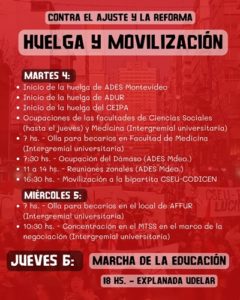 Esto es una continuación de la lucha que se viene sosteniendo desde hace varias semanas por distintos sectores de trabajadores y estudiantes, que rechazan el presupuesto ajustador del gobierno y las políticas de contra reforma educativa que se quieren imponer.