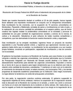 Este jueves los distintos sectores en lucha confluirán en una gran marcha de la educación que concentrará a las 18 horas en la explanada de la UdelaR.