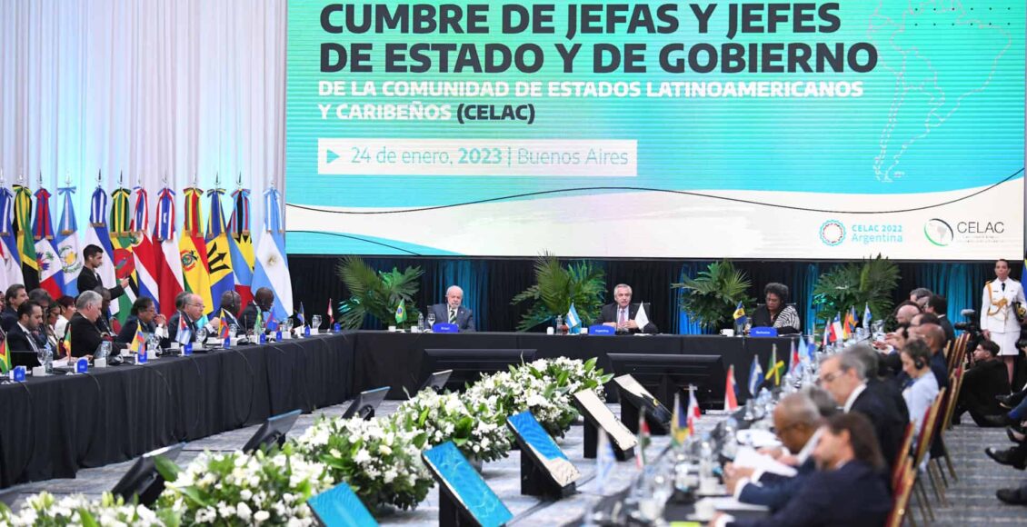 Las Jefas y los Jefes de Estado y de Gobierno de la Comunidad de Estados Latinoamericanos y Caribeños (CELAC), reunidos en la Ciudad de Buenos Aires el 24 de enero de 2023, convencidos de la importancia que tiene este mecanismo intergubernamental de integración regional, de concertación, unidad y diálogo político para promover y proyectar a América Latina y el Caribe en el debate de los temas de la agenda global.