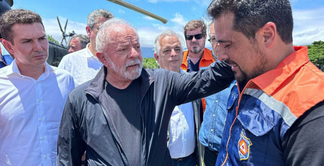 Desde Sao Sebastiao, el municipio más golpeado por las lluvias, que superaron los 600 milímetros en menos de ocho horas, Lula sobrevoló la región.