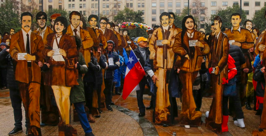 Siluetas en homenaje a las 119 víctimas de la Operación Colombo marchan por Santiago