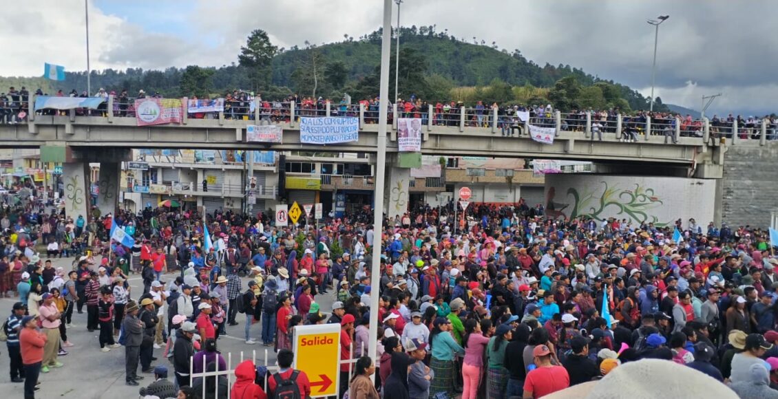Cuatro Caminos, Totonicapán, es uno de los puntos donde hubo mayor concentración de manifestantes. Desde la mañana, las comunidades comenzaron a organizarse para llevar agua pura y atol de maíz a las personas que se encontraban en ese lugar, bajo un sol intenso.