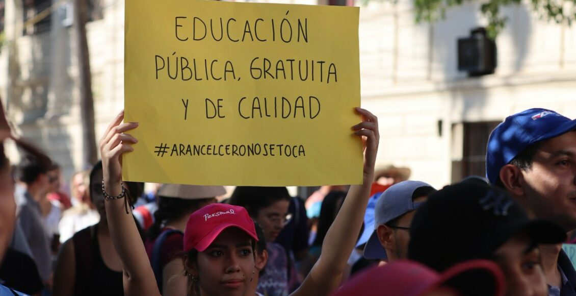En la Universidad Nacional de Asunción, con toma del campus, facultades y rectorado; principalmente reclamando el desfinanciamiento, con fondos Fonacide (7%), del Arancel cero, unos US$ 20 millones logrados para estudiantes de bajos recursos por ley vigente desde el 2021.