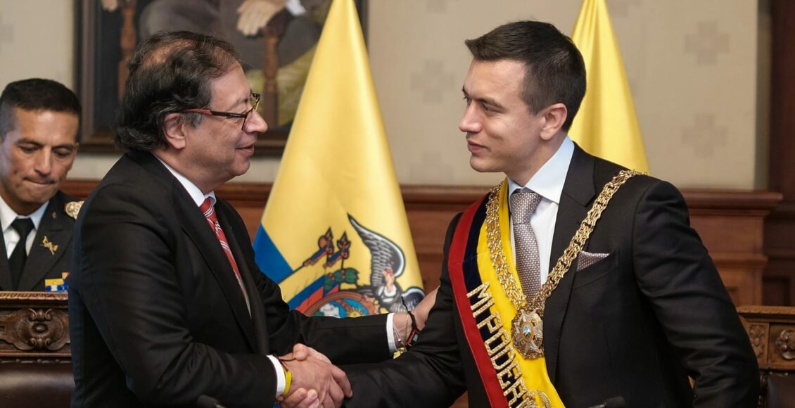 Aun con diferencias políticas, los jefes de Estado de Ecuador y Colombia mantenían buenas relaciones. Tras la escalada en la violencia en el vecino país, en el que Noboa declaró un “conflicto armado interno”, el Gobierno Petro expresó su “explícito e inequívoco respaldo a la institucionalidad y al Estado de derecho” ecuatoriano y su solidaridad con las víctimas de la criminalidad. Además, el presidente colombiano fue el único en asistir a la posesión de su homólogo ecuatoriano.