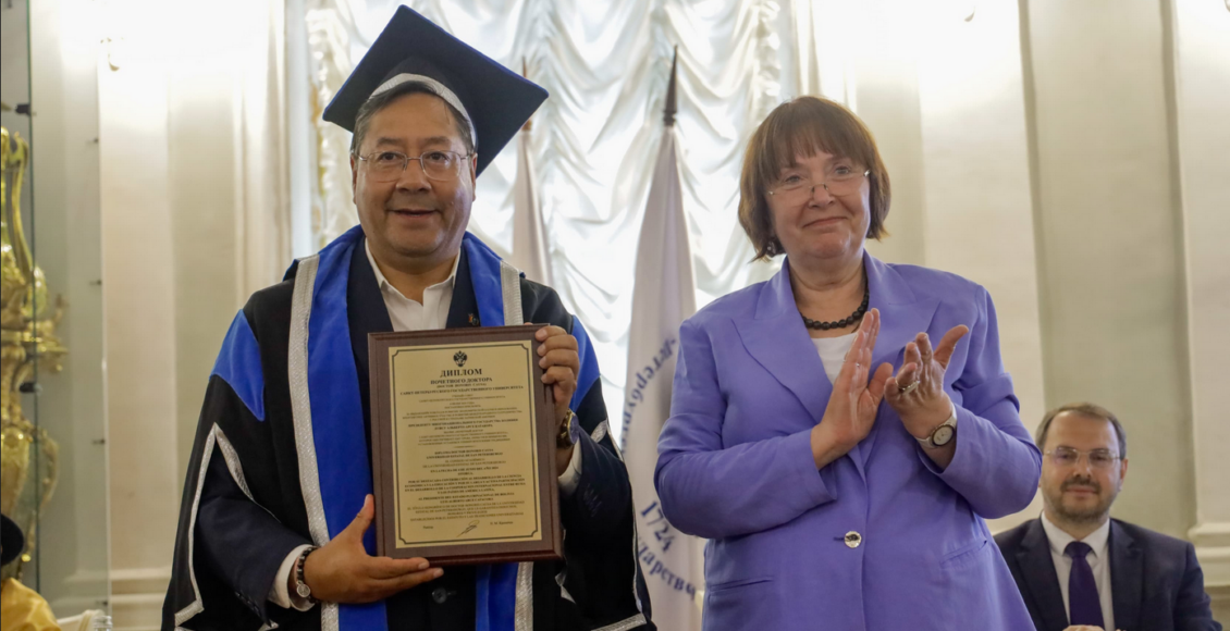 El presidente Luis Arce recibió este jueves el título “Doctor Honoris Causa” de la Universidad Estatal de San Petersburgo y expresó que esta distinción es “un reconocimiento del pueblo ruso al pueblo boliviano”.