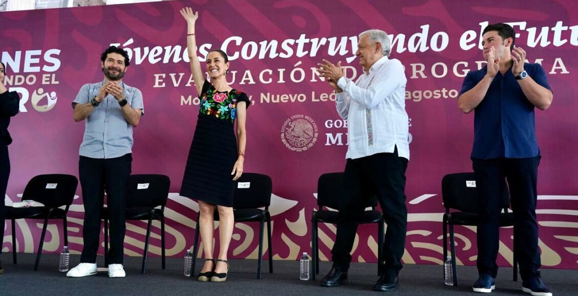 Esta mañana en Nuevo León, el Presidente @lopezobrador_, acompañado de la Presidenta electa @Claudiashein, informó los avances del programa @JovConFuturo. pic.twitter.com/fucgi2oGYI