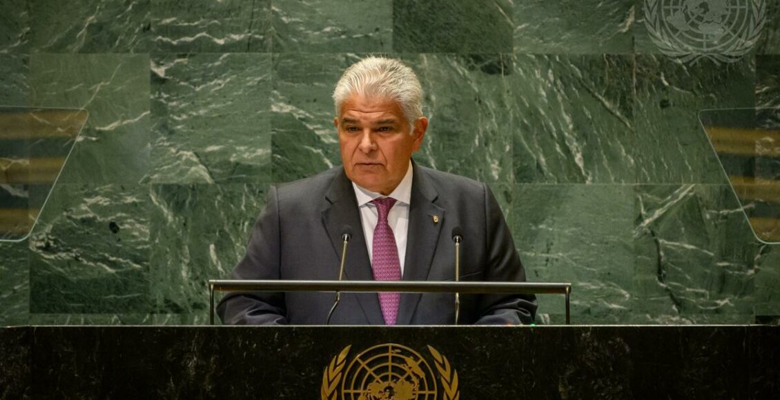 Panamá | Discurso del presidente José Raúl Mulino – 79° período de sesiones 79º Asamblea General de la ONU En 25/09/2024 643 Compartir Panamá, Debate General, 79° período de sesiones Discurso de José Raúl Mulino, presidente de la Panamá, durante el debate general del 79° período de sesiones de la Asamblea General de las Naciones Unidas TEXTO pa_es Descarga asamblea generalDebate GeneralJosé Raúl MulinoNaciones Unidaspanama 643 Compartir